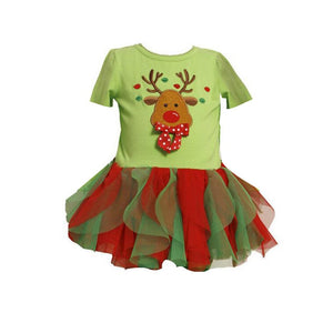 (5Pcs/Lot) 2018 Christmas Kids Dress Clothes Short Sleeve Tutu Ball Gown Cartoon Little Fawn Printed Baby Girls Party Dresses $126.54 $253.08